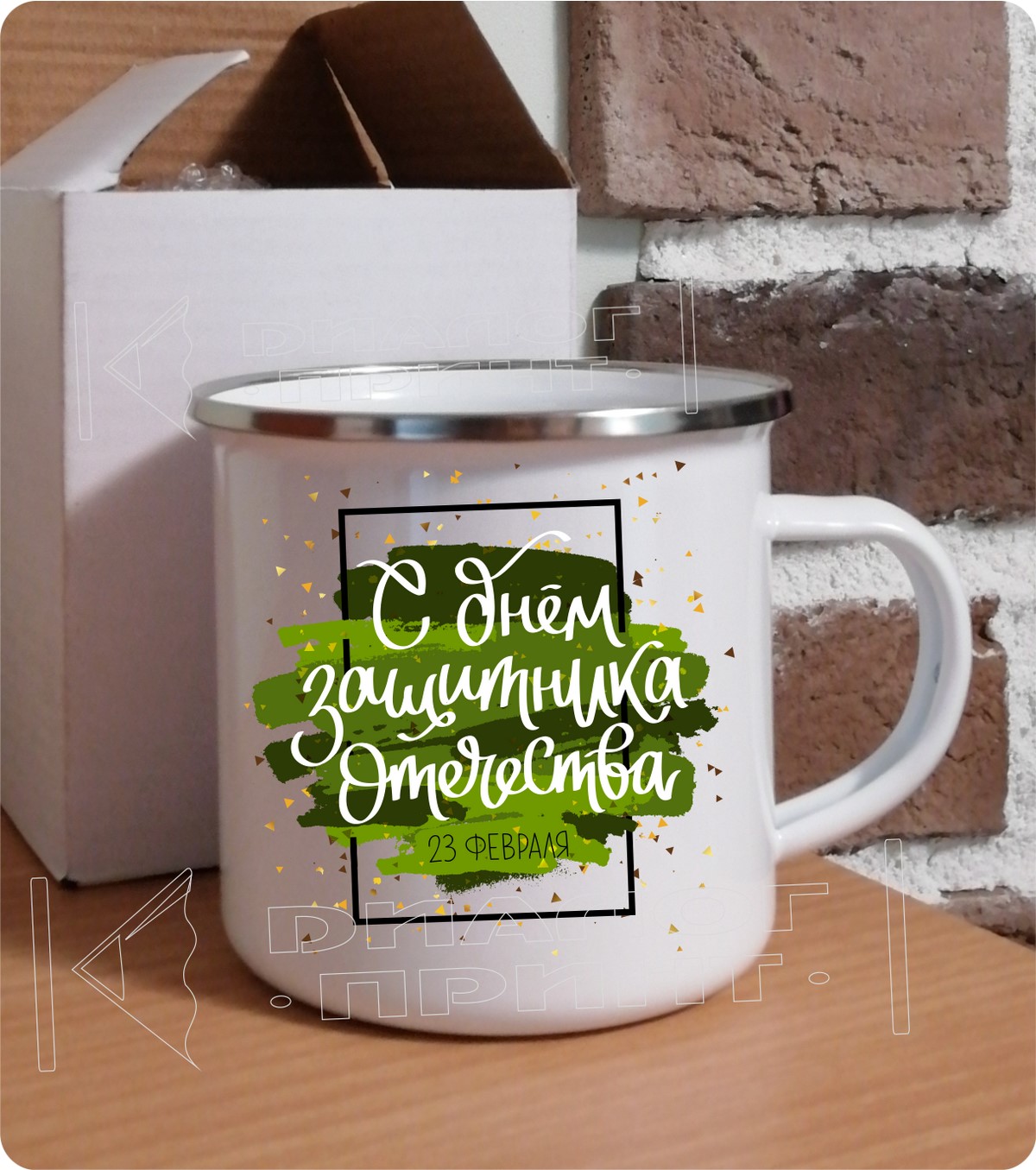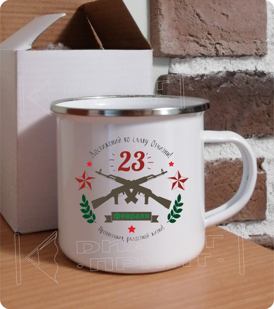 - Кружка металлическая — приятный и полезный подарок на День защитника отечества! На кружке можно разместить фотографию, поздравление или пожелание для близкого человека, друга или коллеги по работе, что сделает подарок еще более интересным.
