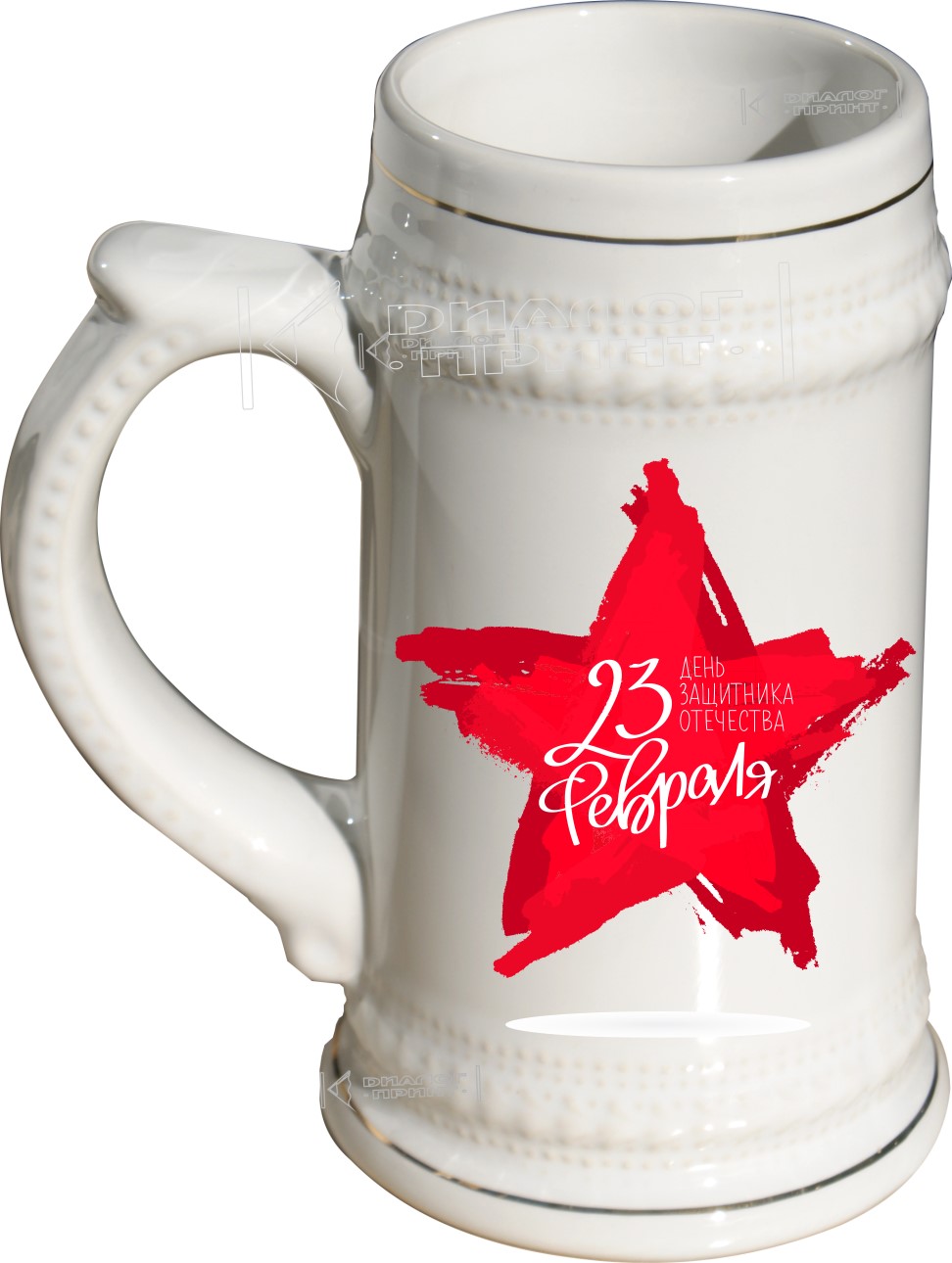 - Пивная кружка объём 620мл. массивная ручка, узорчатая поверхность по краям, золотой ободок внизу и вверху отличный подарок для настоящих Защитников Отечества.