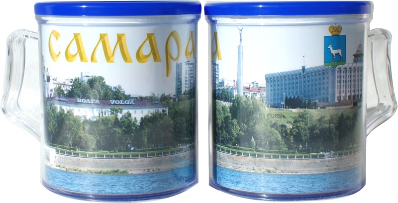 Пластиковая термокружка под полиграфическую вставку объемом 400мл. состоит из 2-х корпусов — внутреннего окрашенного и внешнего прозрачного.