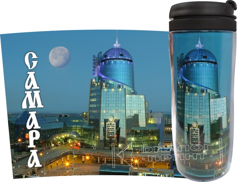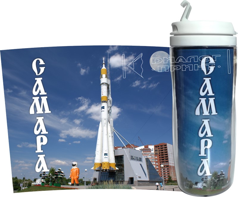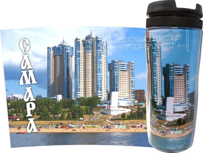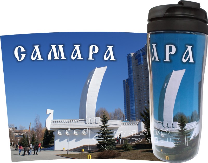 Между корпусами вставляется полноцветное изображение, надёжно защищённое от попадания влаги. Изделие оснащено удобной пластиковой крышкой, которая плотно закрывается и не позволяет напитку пролиться.
