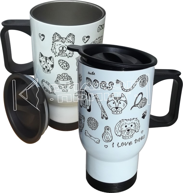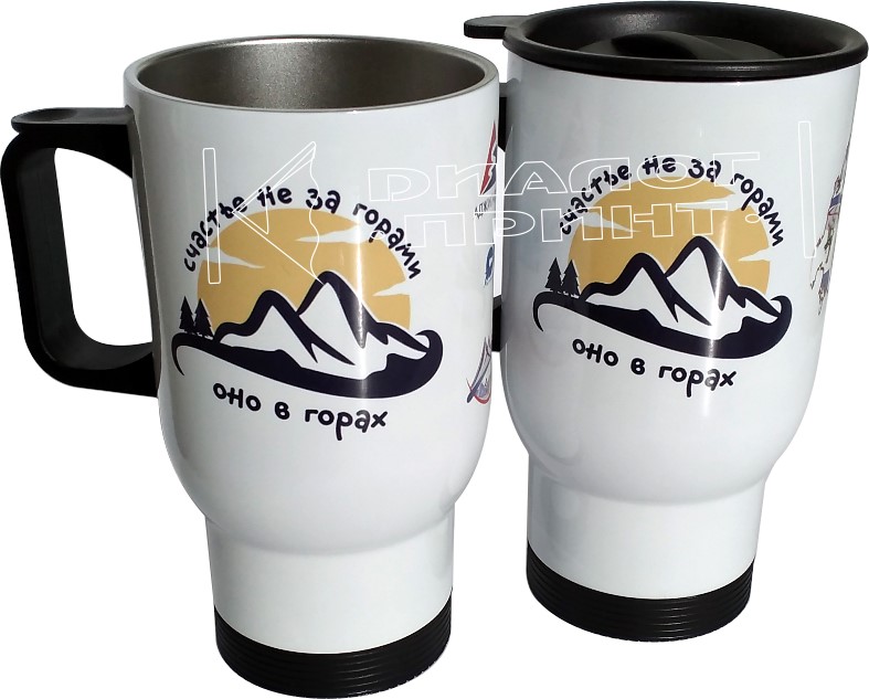 Термокружка для сублимации металл серебро, белая, 500мл. Кружки со специальным дном для фиксации в подставке автомобиля. Двойные стенки позволяют сохранять напитки горячими или холодными в течение 4-7 часов.