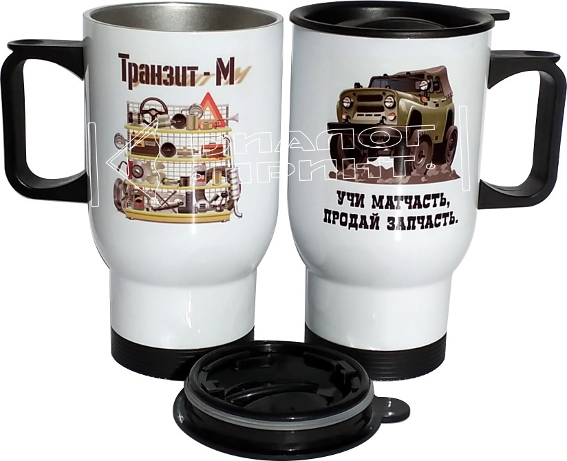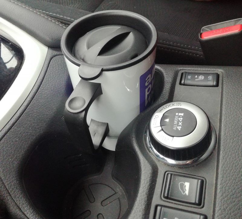 - Автомобильную кружку удобно брать с собой в поездки. Она снабжена крышкой и имеет большой объём.