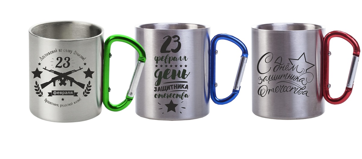 В нашей компании Вы можете купить кружки с карабином для рыбаков, охотников, туристов и военных с текстом, логотипом, картинкой и символикой, напечатанные по Вашим макетам методом сублимации.